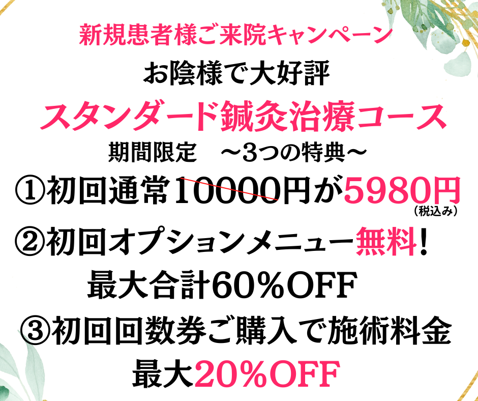 お陰様で好評いただいております。スタンダード鍼灸治療コース初回トライアルキャンペーン