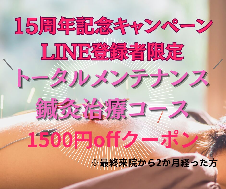 ✔トータルメンテナンス鍼灸治療コース 1500円offクーポン
