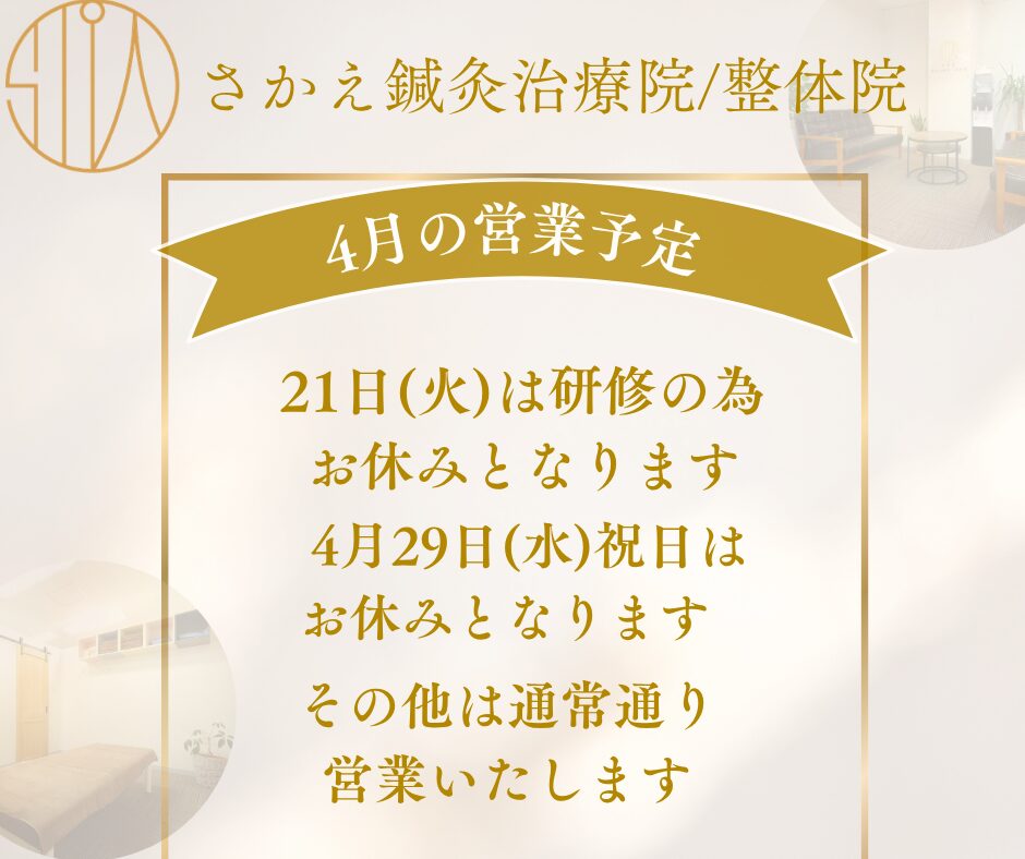 令和8年4月の営業予定 仙台市青葉区 さかえ鍼灸治療院/整体院